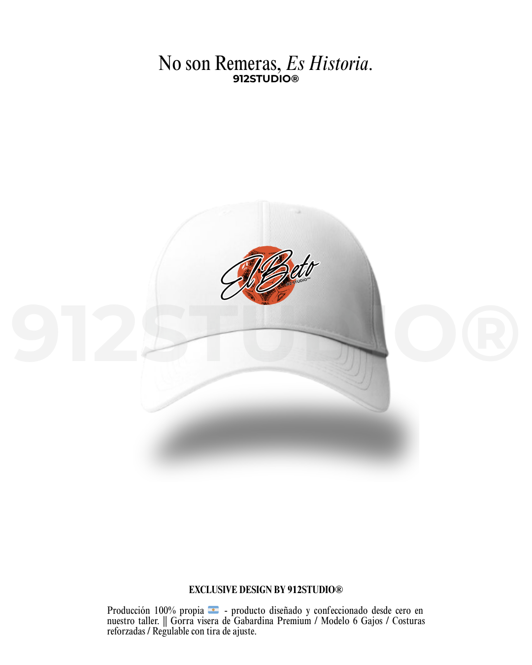 Gorra visera de Gabardina Premium / Modelo 6 Gajos / Costuras reforzadas / Regulable con tira de ajuste.