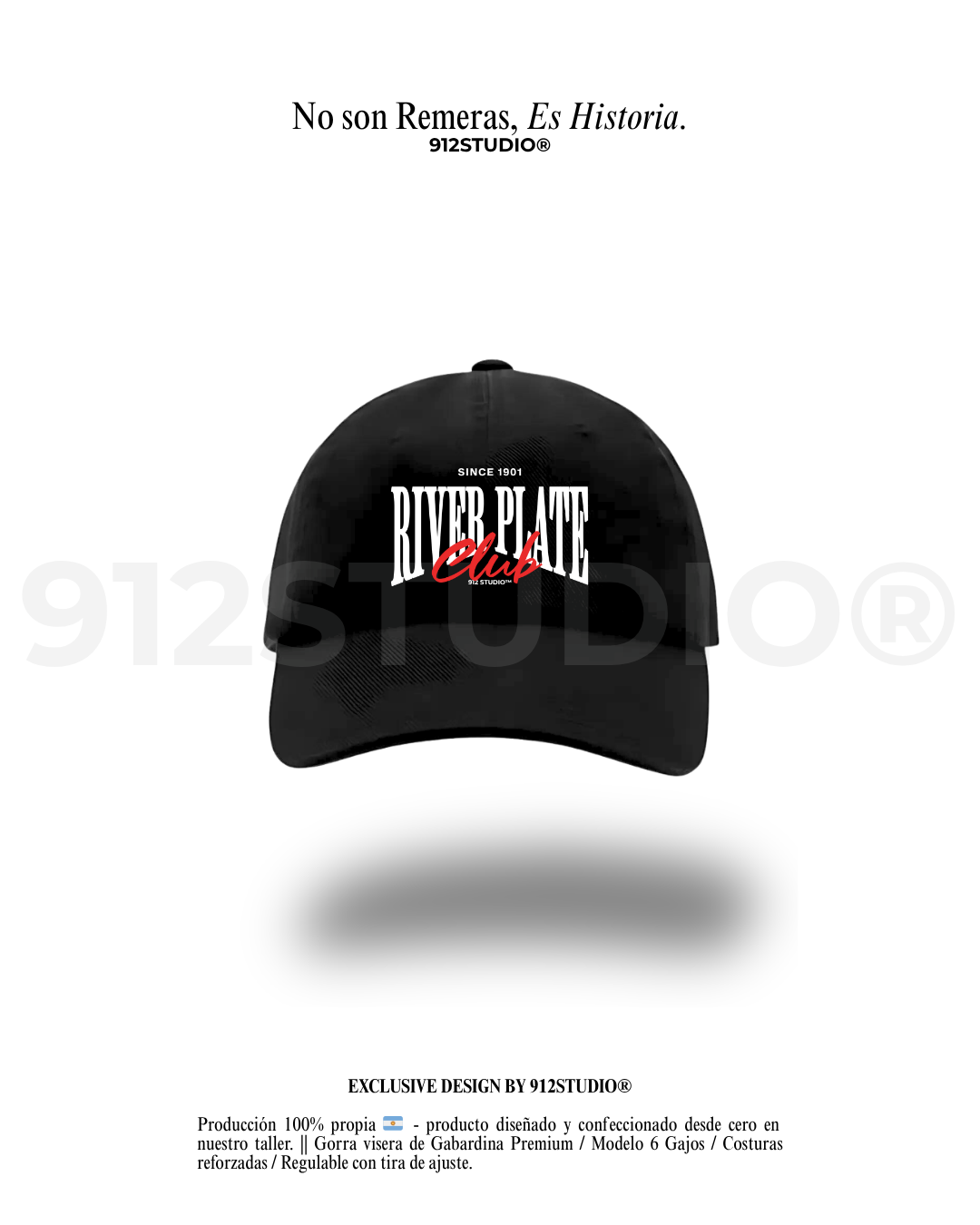 Gorra visera de Gabardina Premium / Modelo 6 Gajos / Costuras reforzadas / Regulable con tira de ajuste.