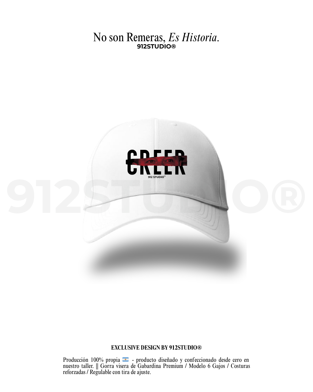 Gorra visera de Gabardina Premium / Modelo 6 Gajos / Costuras reforzadas / Regulable con tira de ajuste.