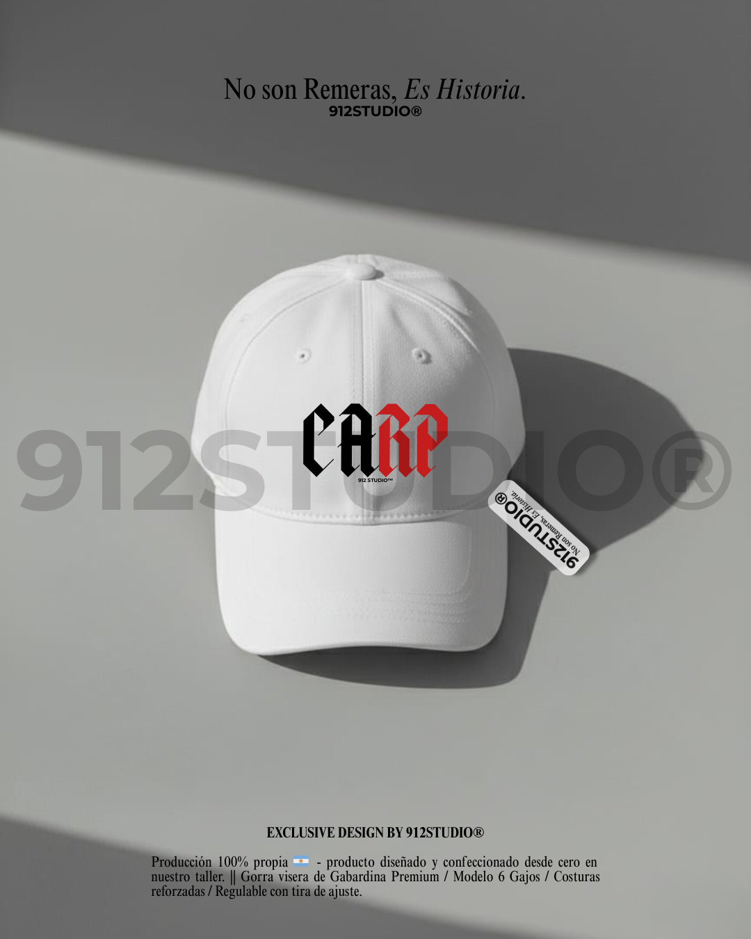 Gorra visera de Gabardina Premium / Modelo 6 Gajos / Costuras reforzadas / Regulable con tira de ajuste.