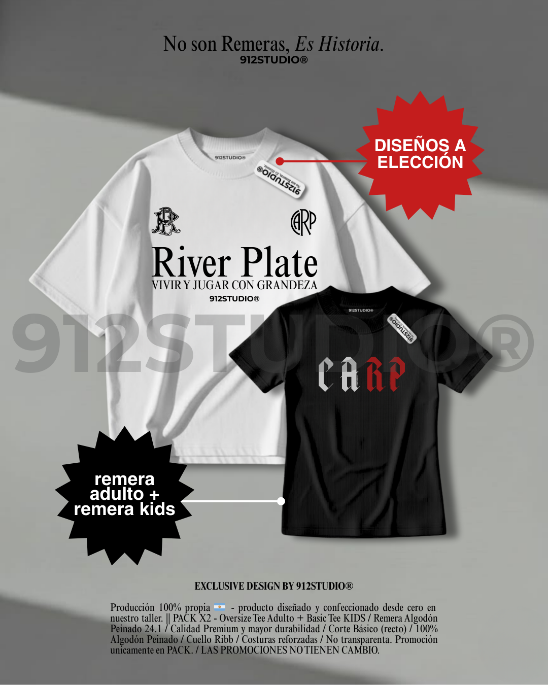 PACK X2 - REMERA CORTE OVERSIZE ADULTOS + REMERA CORTE BÁSICO INFANTIL (ESTAMPAS A ELECCIÓN)